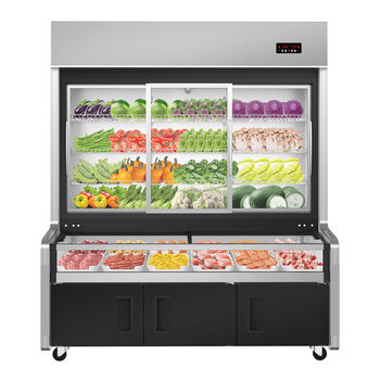 Equipo de refrigeración de pantalla Malatang de temperatura única comercial Patente multifunción Tri-Zone Pro Caja de vidrio de refrigeración por aire